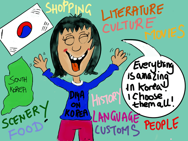 Cartoon, Diya Cartoon Why I love Korea (cartoon) So the many reasons why I love Korea. There are even more but if I added more images.. I would never stop! Share this: Click to share on X (Opens in new window) X Click to share on Facebook (Opens in new window) Facebook Click to share on LinkedIn (Opens in new window) LinkedIn Click to share on Reddit (Opens in new window) Reddit Click to share on Tumblr (Opens in new window) Tumblr Click to share on Pinterest (Opens in new window) Pinterest Like Loading... Related