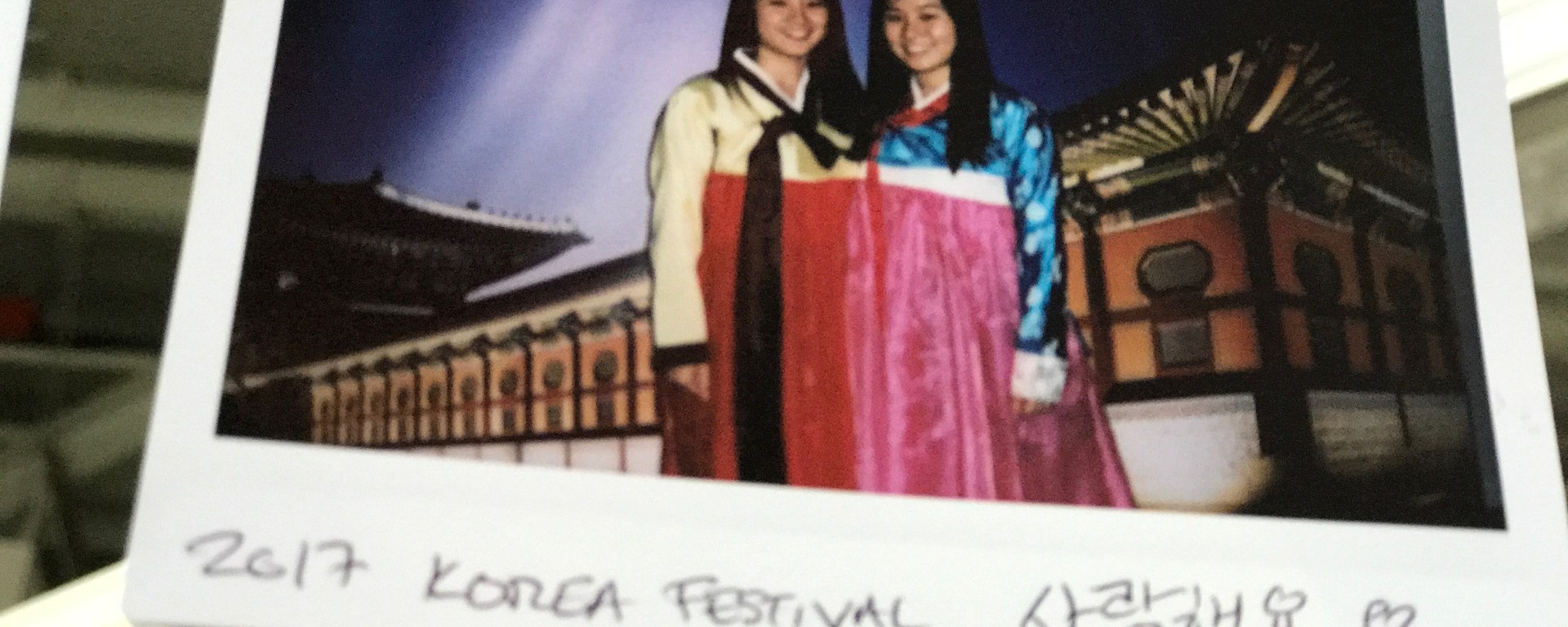 I walked to the far end where I saw only girls with their friends, trying on the Korean traditional dresses Hanbok, and posing in front of the backdrop of the palaces for a photo. Staff were taking polaroid pictures as well and hanging them up in front of the exhibit.