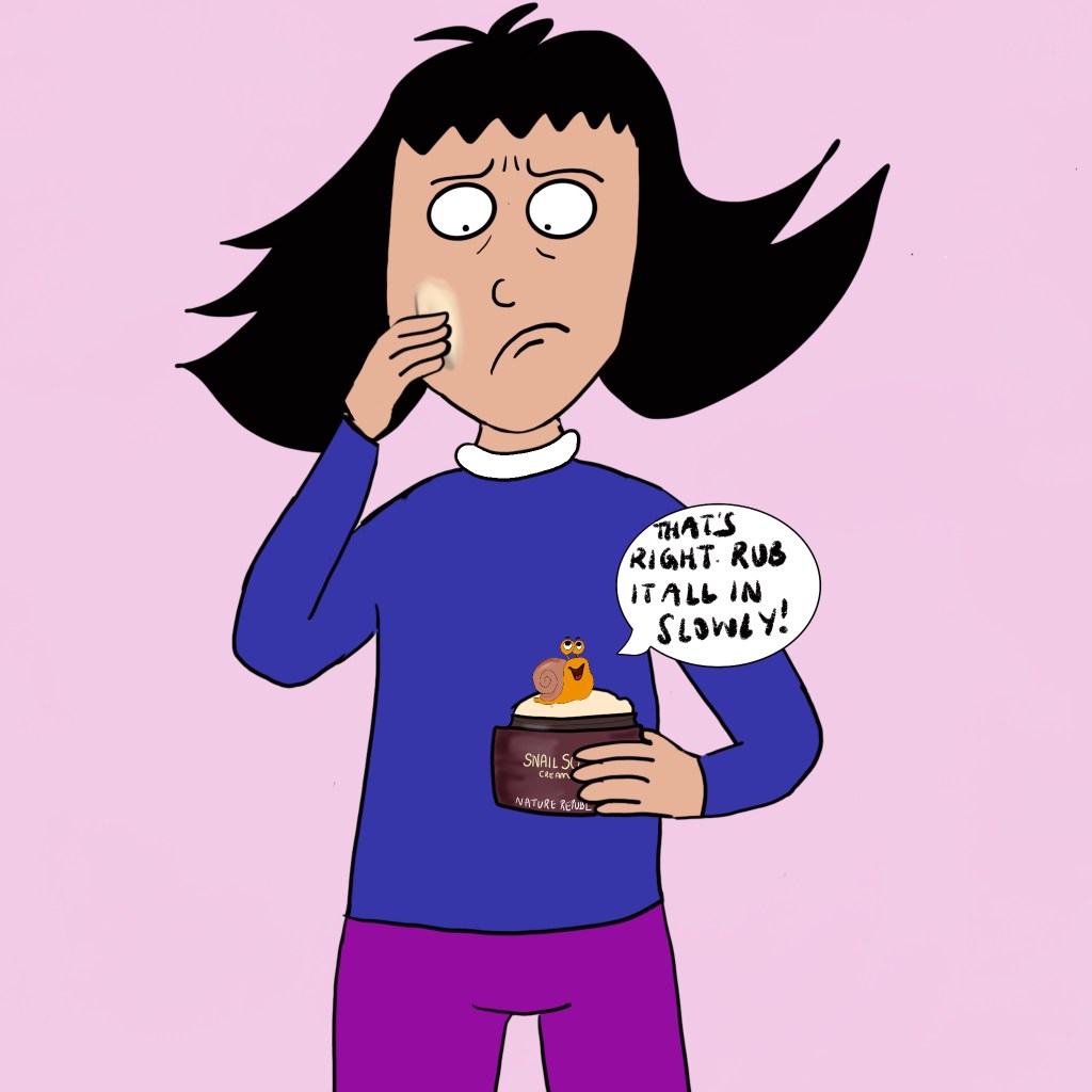 Cartoon My snail skin care cream regime [Cartoon] Have you tried snail cream? It is a popular ingredient in Korean skin care products. The thick gooey substance comes from various parts of the snail. It can help to keep the skin moist. It also improves skin texture and offers many other benefits. Share this: Click to share on X (Opens in new window) X Click to share on Facebook (Opens in new window) Facebook Click to share on LinkedIn (Opens in new window) LinkedIn Click to share on Reddit (Opens in new window) Reddit Click to share on Tumblr (Opens in new window) Tumblr Click to share on Pinterest (Opens in new window) Pinterest Like Loading... Related